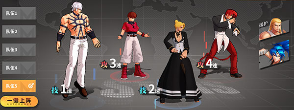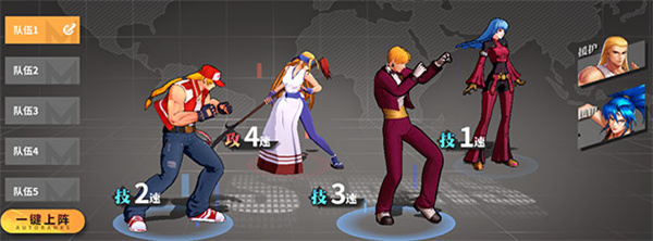 SNK多系列IP人物首次跨时空集结,无限连招无限必杀纵情战斗!放置挂机,轻松战斗,童年记忆里的格斗家大招再也不用搓招啦!