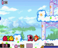 游戏里面除开游戏玩家实际操作的卡比外,也有此外三个卡比,单人闯关中,她们是由计算机操作