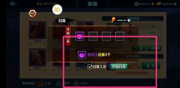 你可以指定一个数值比如装备进阶材料掉落量然后一直扫荡让后去改善这个数值然后改大冻结这个数值然后再扫荡你会发现扫荡不出来,别急,这样你就修改成功了然后坐等系统反应给你刷经验就行了