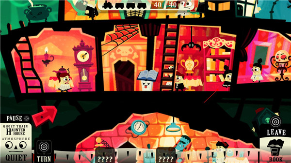 3、被惊吓后的人逃跑的方式是有一定规律的,轻度惊吓的人只会转身走开,去隔壁房;惊吓程度较高的人则会转身快速走开;很高程度的惊吓,对象会惊呼后转身跑开,如隔壁有楼梯则会走楼梯;最高程度惊吓后的人会惊声尖叫着转身快速逃跑,如果受到连续的重度惊吓则可能直接跳窗死掉。因此,想要尽快完成游戏,就要充分利用好这些规律,想方设法通过不同程度的惊吓把屋子里的人逐渐驱赶到1楼,最终让他们从大门处逃走;