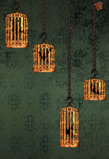 根据旗袍下面鸟类图案的形状和高度,将鸟笼吊到相应的位置