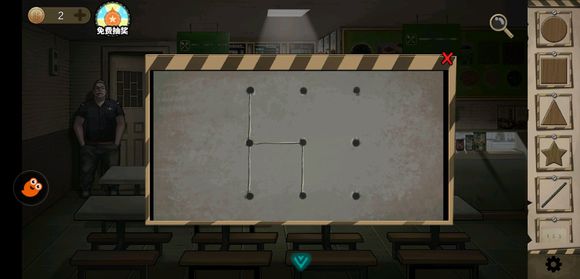 拿着配制好的钥匙,成功打开了牢门。依照A先生给出的提示,径直前往二楼。到达二楼后,在过道处找到牢门,点击牢门下方的栅栏,随后将三角、方形、五角星以及圆形的木片,分别放置到对应的牢房之中。