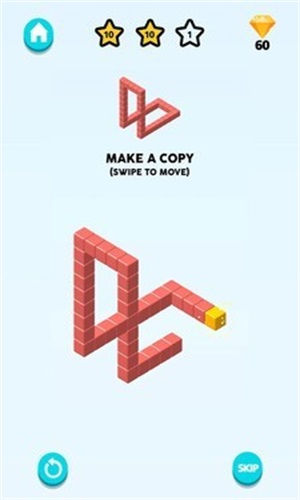 《可能的路线》是一款休闲益智类游戏。在每一关里,游戏都会向你展示一个2D图形,你需要依照游戏要求,把这个2D图形转化为3D图形的样式。这一过程看似轻松,实则需要你认真思考,不仅得具备强大的空间想象力,还得拥有极强的数学思维逻辑。