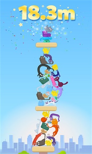 3. 在游戏画面的侧边,设有一把直尺,其作用是测量小猫堆叠的高度,这对玩家而言,是一种颇为不错的参考。
