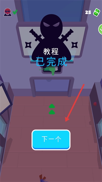 4、完成教程任务,待屏幕上出现“教程已完成”的提示后,点击【下一个】按钮,以继续推进游戏进程。