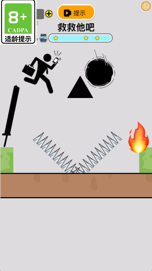 1、进入关卡后,玩家需要仔细观察场景,了解火柴人面临的危险和可用的道具;