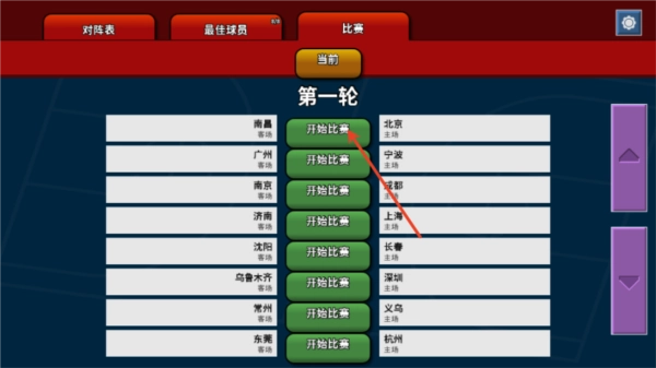 6、第一轮比赛由南昌对阵北京,点击中间的“开始比赛”按钮即可开启。