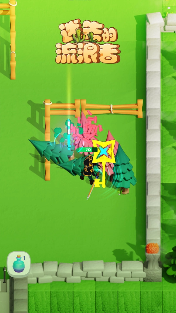 1、通过滑动操作控制角色移动,砍伐树木可获取进入下一关的钥匙。