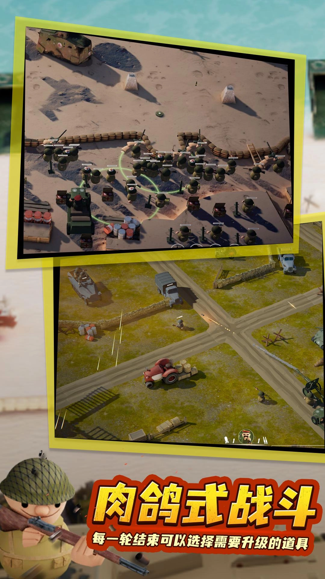 2、首先映入眼帘的是一群可爱的士兵形象,而独特的塔防玩法设计,能让玩家体验到充满趣味的游戏过程。