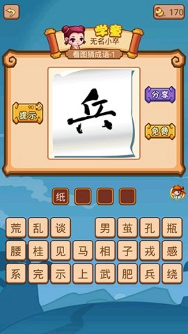 6、点击提示按钮,随机填充一个文字格子,帮助你。