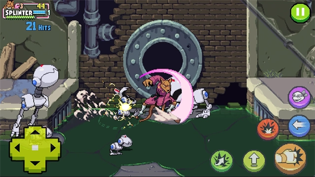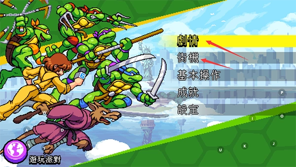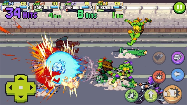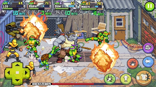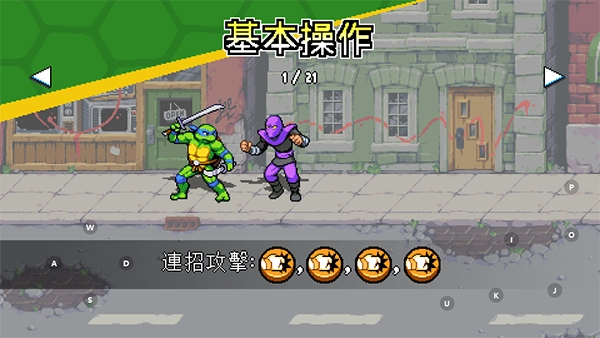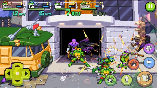 《忍者神龟:施莱德的复仇》安卓版是一款以忍者神龟为主题的街机风格格斗动作游戏,复古的美式漫画画风将带领玩家踏入黑恶势力横行、忍者神龟坚守正义的世界!在游戏中,玩家可以化身拉斐尔、李奥纳多、米开朗基罗、多纳泰罗等角色,手持钢爪、鞭子、弹弓、武士刀等武器,与挥舞斧头、弓箭、薙刀、单刀、长枪的忍者们展开生死对决。 作为一款经典的街机游戏,本作十分考验玩家对普通攻击、角色必杀技、跳跃、翻滚等操作的组合运用——不同的按键顺序能触发截然不同的华丽连招。此外,游戏还支持多人本地同屏联机,快邀请好友一起,在曼哈顿的街头与穷凶极恶的罪犯们展开热血激战吧!