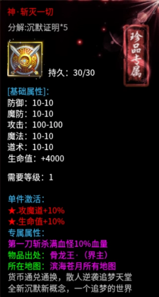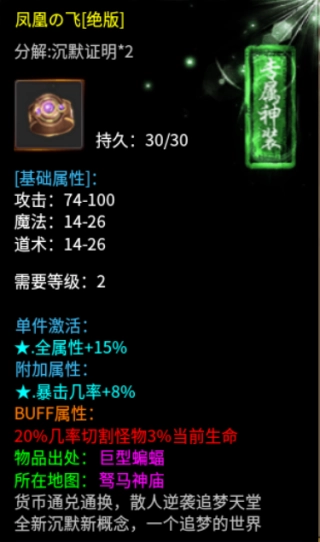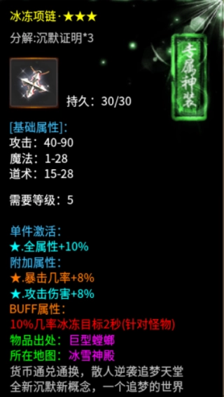 5. 散人必追专属装备:冰冻项链、切割手镯、切割武器、减伤盾牌、攻速宝物