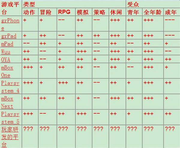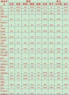 在开发阶段的前期,选择合理的游戏受众,游戏类型,平台非常重要,具体的相符性:如下图所示,大家可以参考下:
