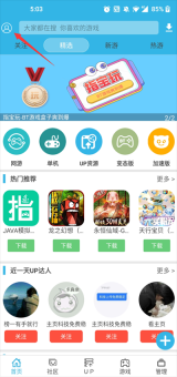 4、如果是想要找到自己想要游戏的应用的话,那必须也是点击“up”功能按钮。