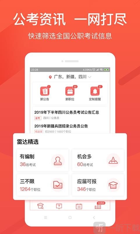 1.每天实时权威发布全国公职类报考公告、职位信息;