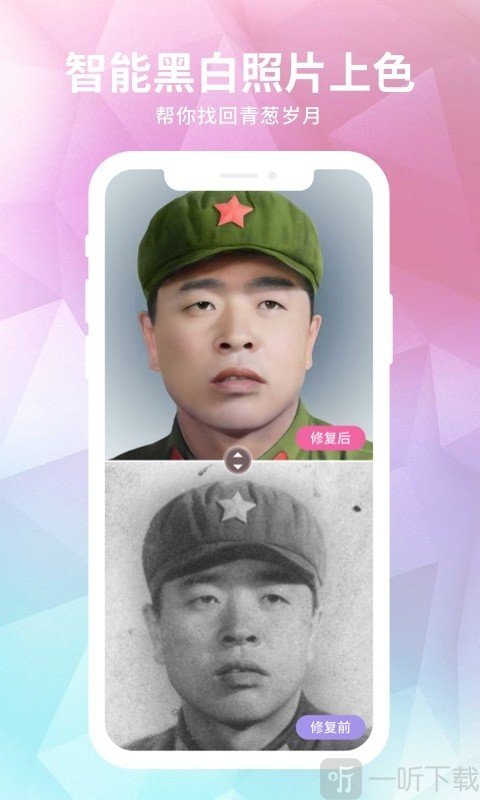 操作轻松便捷,用户一键即可完成修复。无论是何种老照片,皆能重焕新生,大幅节省用户的时间与精力。不仅如此,黑白照片还能转化为彩色,照片细节也能得到修复,使老照片以崭新姿态展现。