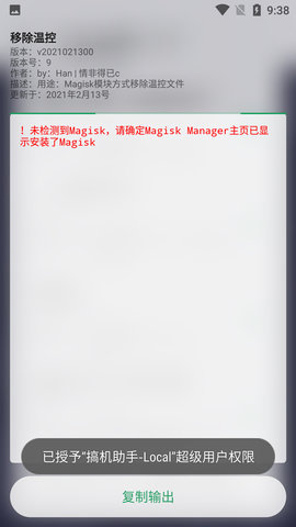 【Magisk模块管理页面】 对手机上已安装的模块进行禁用/卸载、提供比Magisk更详细的模块界面、同时支持检测未提供信息的Magisk模块并支持删除、支持强制移除模块