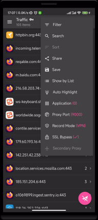 5、支持对抓包数据进行筛选、搜索,以及设置抓取指定应用和指定Host/IP。