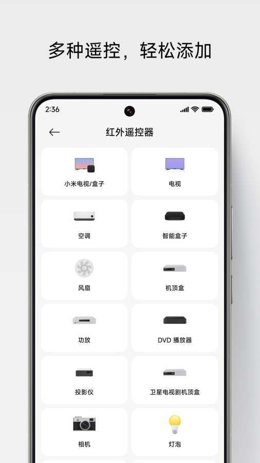 1、小米万能遥控器安装手机版满足不同用户的遥控需求。支持多种品牌和型号的家电。