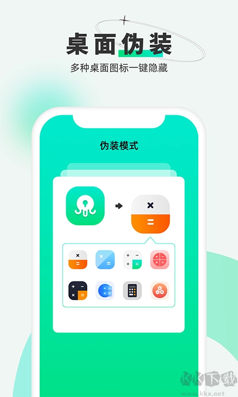 章鱼隐藏支持将应用图标伪装成计算器等样式并保留实际功能,而应用隐藏大师采用动态图标变换技术,可定时自动更换伪装图标