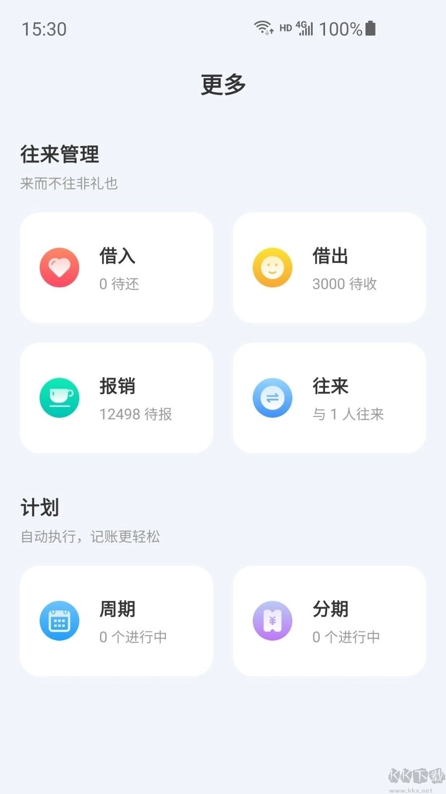 账本管理页面有周期交易功能。