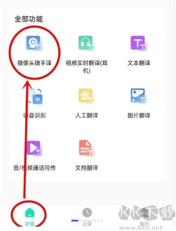 1. 开启拍照翻译功能后,能够点击摄像头进行随手译操作。