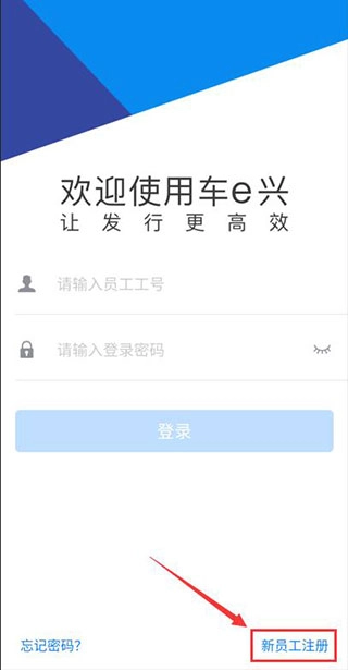 1、首先我们在本站etc发行最新版,然后打开就能来到登录界面,已有账号的可以直接登录,没有的话请点击右下角的新员工注册;