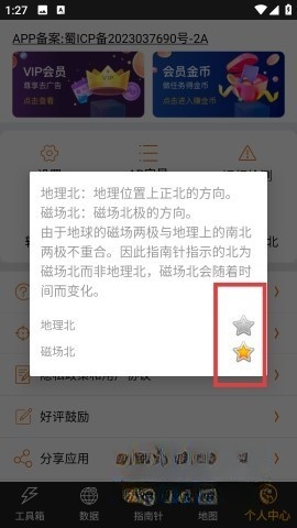 3、点击设置地理北时,会弹出说明框,明确区分地理北与磁场北的差异,用户可根据自身需求选择切换,进而让定位方向更精准。