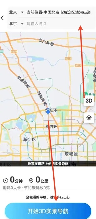 用户能够查看你目前所在的位置,还可以在搜索栏里输入自己想要前往的目的地。