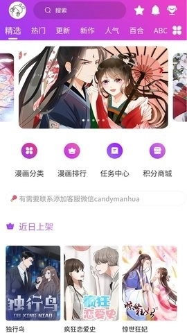 1、首页整合了漫画分类、漫画排行、任务中心与积分商城等板块内容。