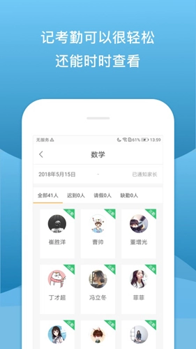 通知/作业/成绩单:随时随地接收学校的通知,作业,成绩单,实时掌握孩子的在校动态。