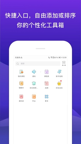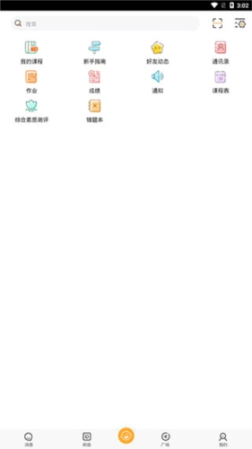 3、【主页】:此界面显示的都是一些用户常见的功能,例如我的课程、好友动态、通讯录、作业、成绩、通知等。