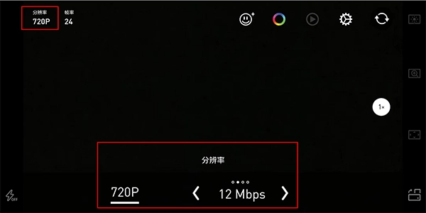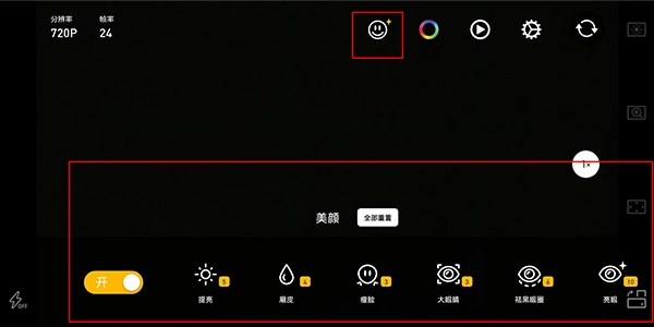 1、打开Protake随身电影机,先将分辨率调整为720p(这样就能启用美颜功能了)