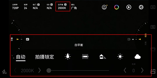 操作:选择钨丝灯模式(部分设备不支持调节,若支持可手动调整色温)