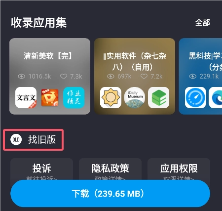 3、在详情页向下滑动,找到页面底部的【找旧版】按钮,点击该按钮进入。