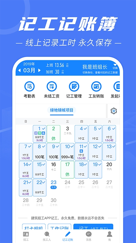 建筑招工软件融合了招工信息发布、求职简历查阅、线上交流、面试协调等功能,致力于为建筑行业构建一个多维度的招工平台。