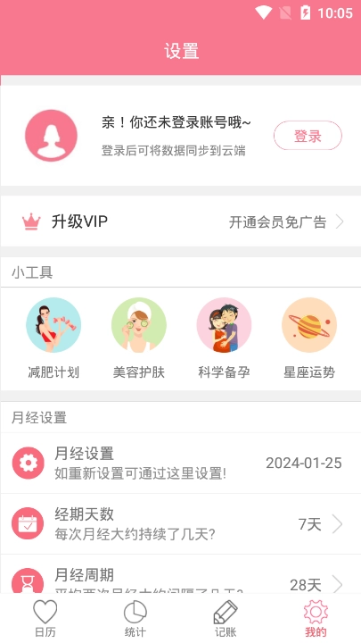 1. 设置周期:初次使用时,按照提示完成个人月经周期信息的设置。