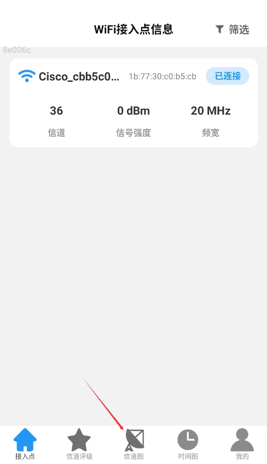 1、开启极速5GWiFi,在界面下方找到信道图功能的入口。
