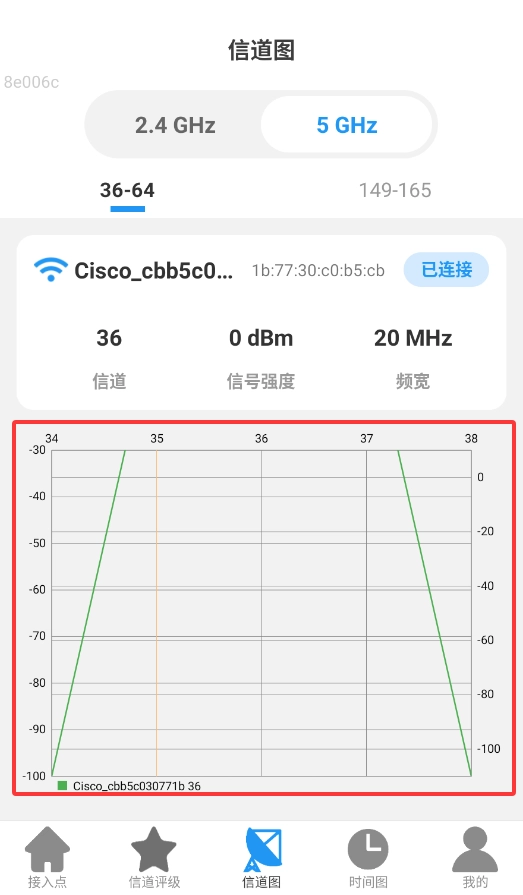 2、点击进入信道图界面,首先可浏览2.4Ghz频段的信道数据图 。