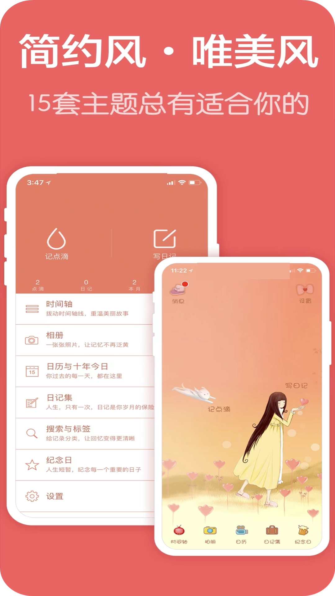 恋爱手帐为你们留存专属的甜蜜回忆,在这里,你们能记录下恋爱中的每一天时光,标记恋爱天数,记下结婚纪念日;此外,还能借助纪念日倒数日功能和恋爱手账,将那些美好回忆好好珍藏。