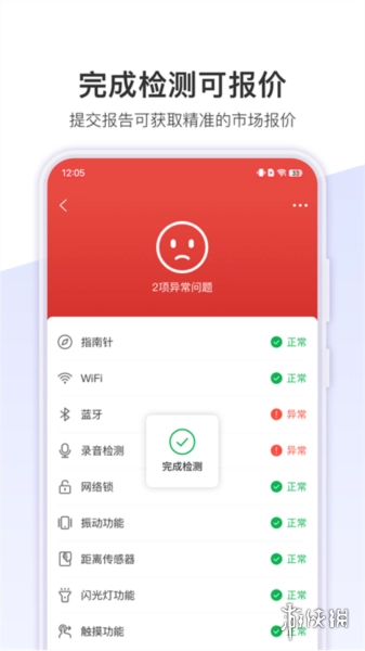 软件还拥有自动检测功能,可以检测手机蓝牙、麦克风、摄像头等硬件。