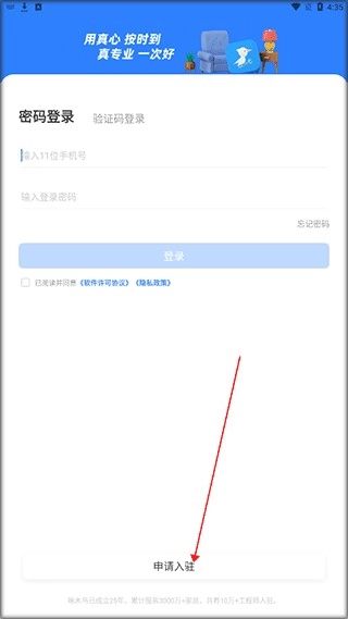 1、安装好啄木鸟工程师软件后,打开软件进入主界面,找到并点击图示位置,提交入驻申请。