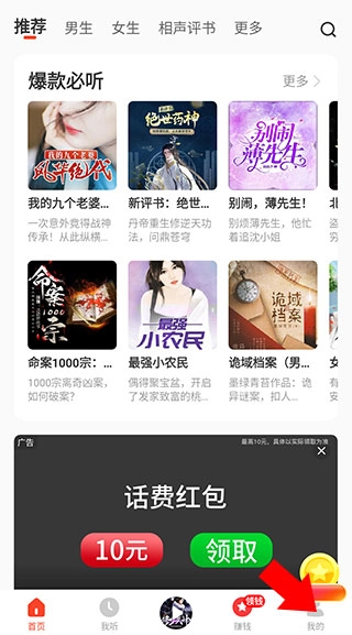 1、并打开懒人听书,点击右下角“我的”