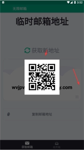 1.打开临时邮箱软件后,我们能看到如下界面,系统在这里免费为我们提供了一个邮箱。