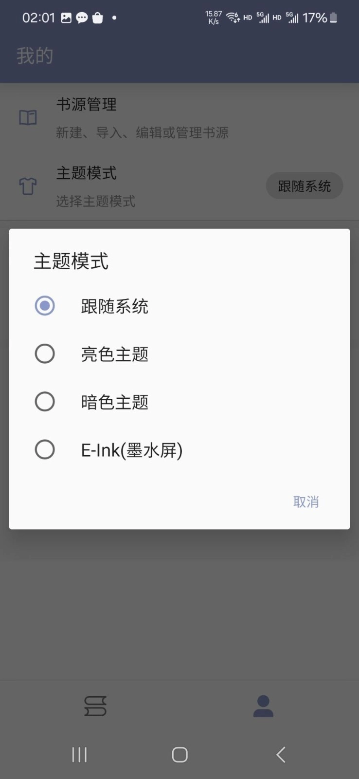 2、点击【我的】,然后用户点击【书源管理】