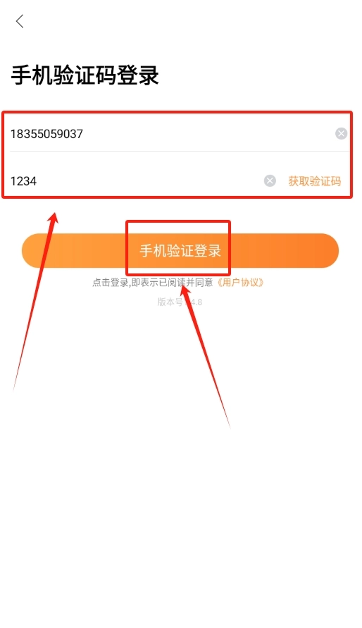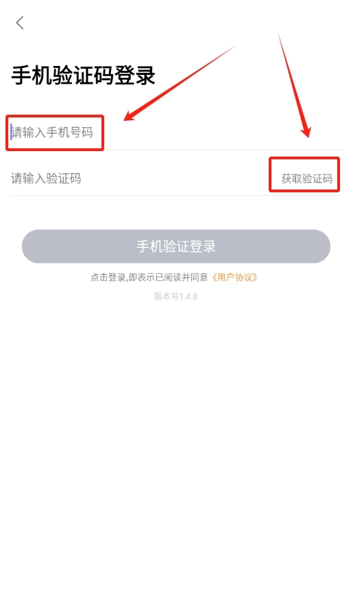 2、在登录页面输入手机号,点击 “获取验证码” 按钮等待短信。