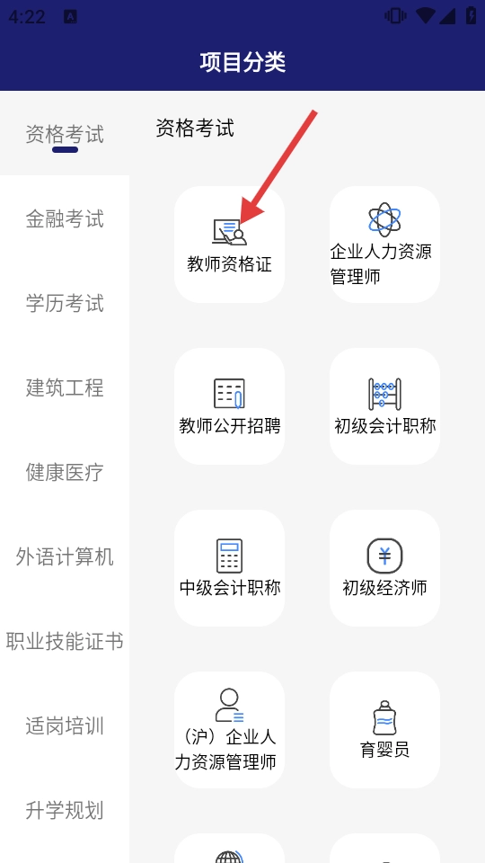 1、启动软件后,在项目分类页面挑选对应的考试类型,随后进入考试页面。