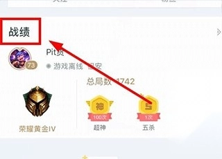 7、这样就可以进入该玩家的主页,点击其中的“战绩”。