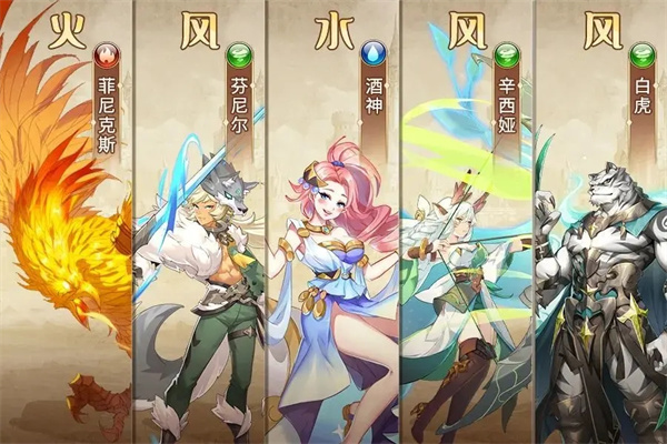 上面给出的白虎、凤凰、酒神、老狼均满足以上条件。然后寻找风/水系第五人,这里不一定局限于辛西娅,辅助型人才来什么用什么,凯兰崔尔、娜迦、斯卡蒂都可以。