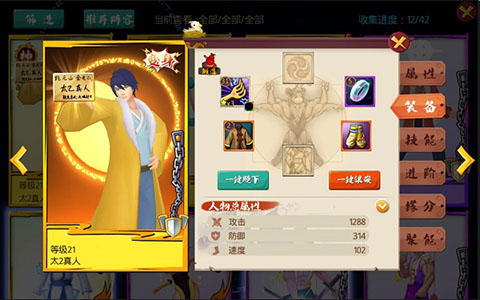 这款游戏装备的获取途径比较单一,点击主界面内“锻造”按钮,萌萌的二葫就会来帮你打造装备啦。游戏装备共有四个位置,分别是武器、上衣、下衣以及饰品。锻造装备需要装备图纸以及材料,这两种物品都可以通过副本掉落。另外,锻造商店内也出售装备材料,需要玩家花费金币进行购买。